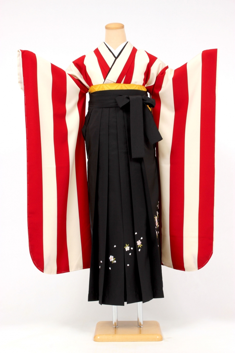 卒業式レンタル 振袖+袴セット Mサイズ 白赤/粋/きもの道楽