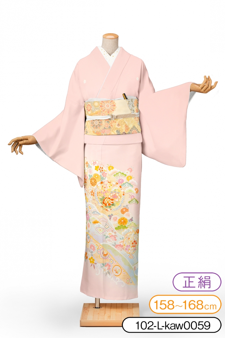 102-L-kaw0059色留袖レンタル色留袖Lサイズ雪輪四季花文ピンク