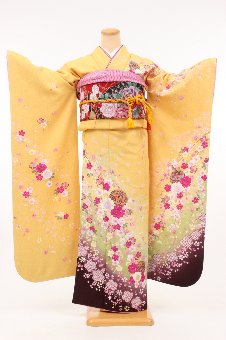 振袖レンタル Lサイズ 黄/結び紐に鞠