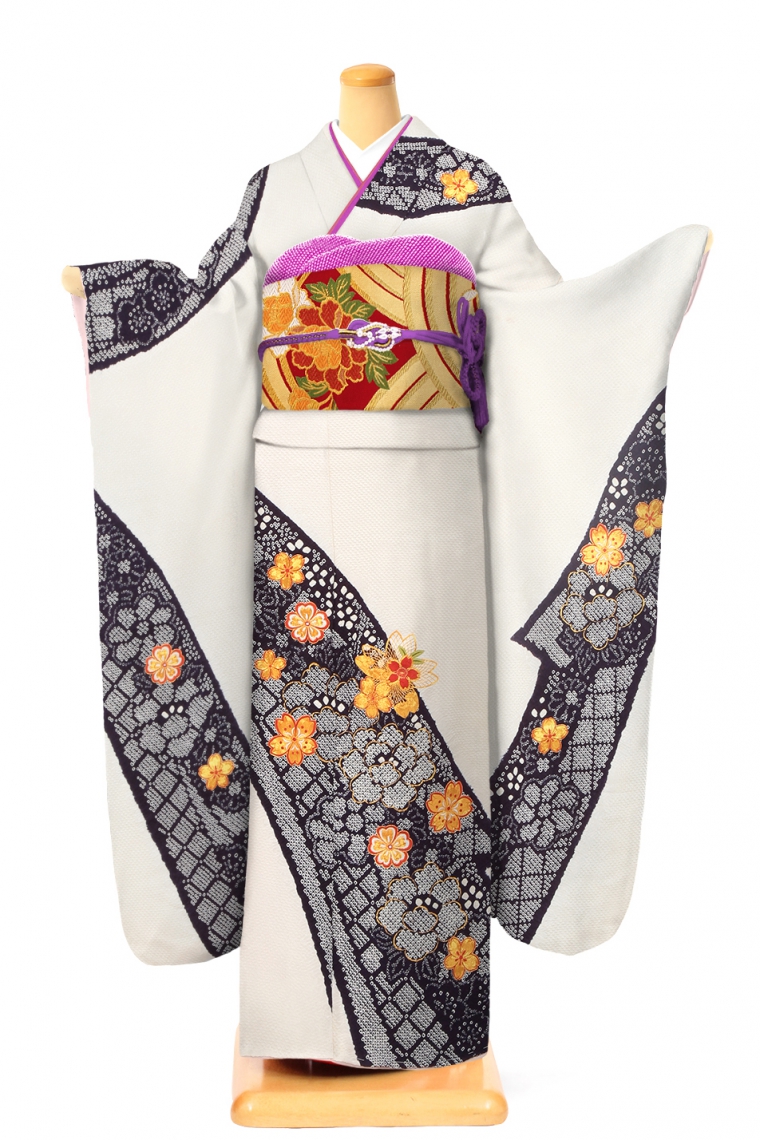 振袖レンタル オーダーレンタル 白地/絞り染め 桜金駒刺繍