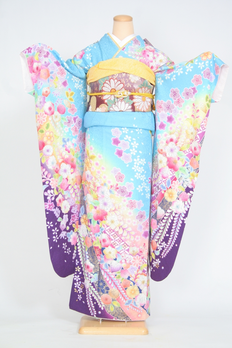 振袖レンタル Lサイズ 水色/辻ヶ花桜模様