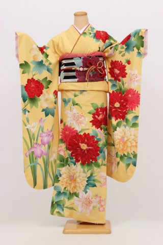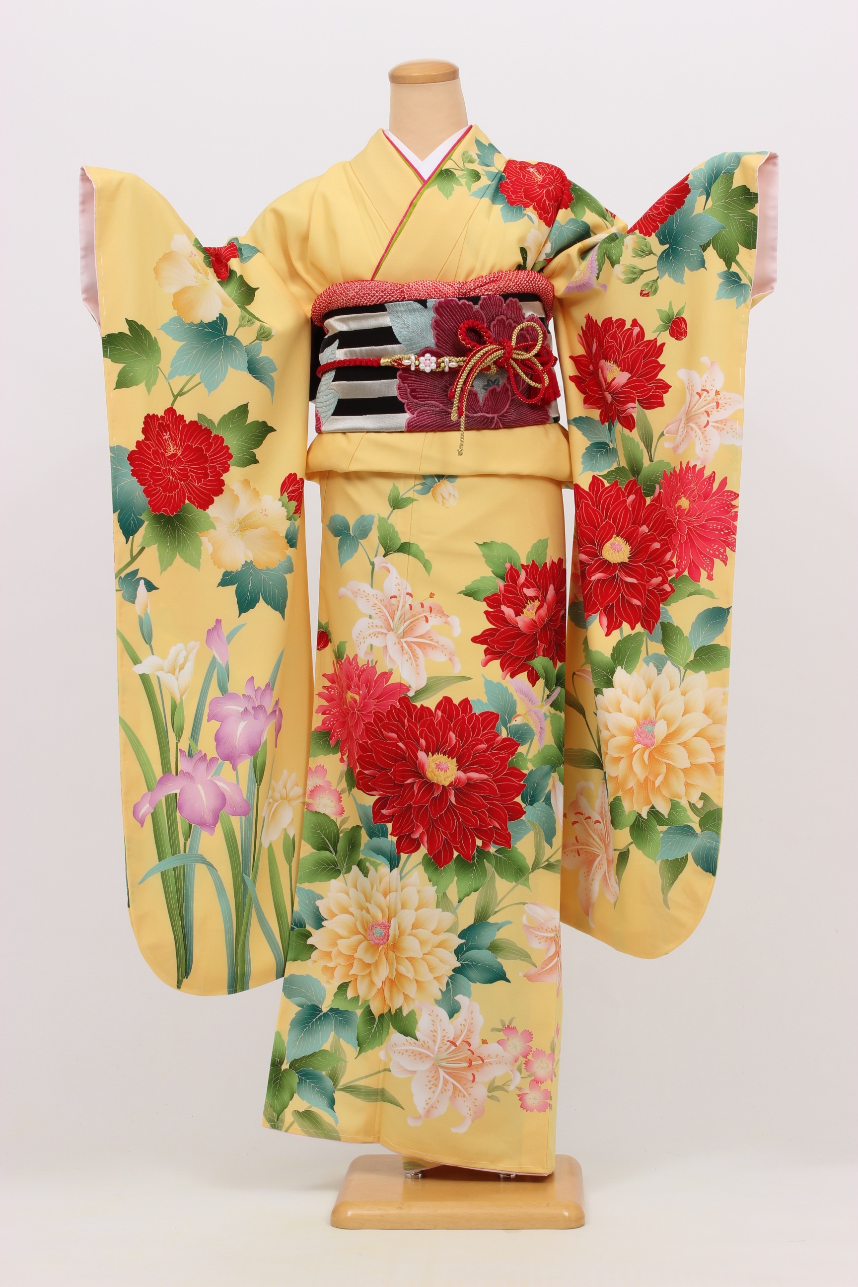 振袖レンタル Mサイズ 黄色/アヤメと牡丹/きもの道楽