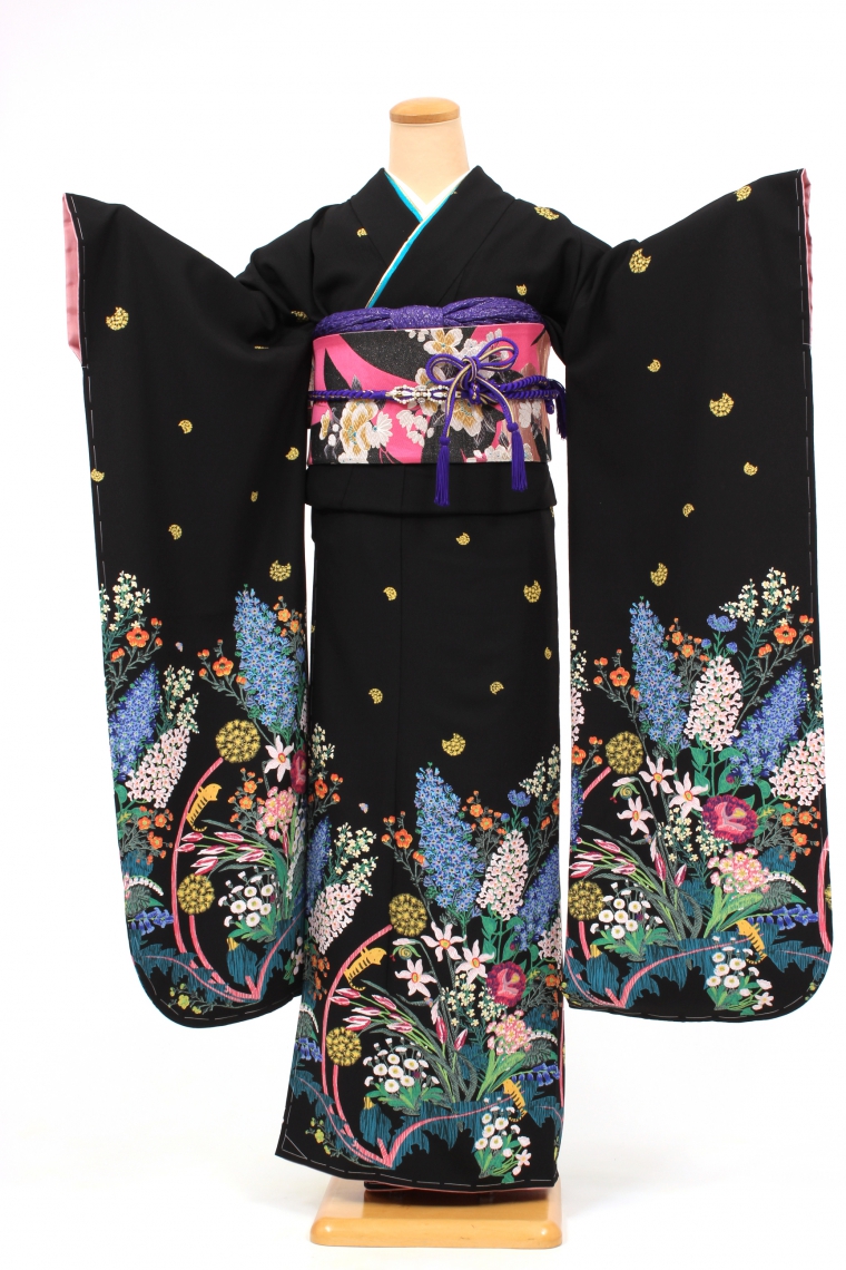 振袖レンタル Mサイズ 黒地/ツモリチサトワールド/ツモリチサト