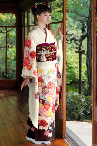 お客様:A.T様 岩手県 20代 成人式にご利用 振袖レンタル 振袖SOサイズ 花園 白 5 ..