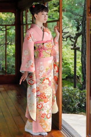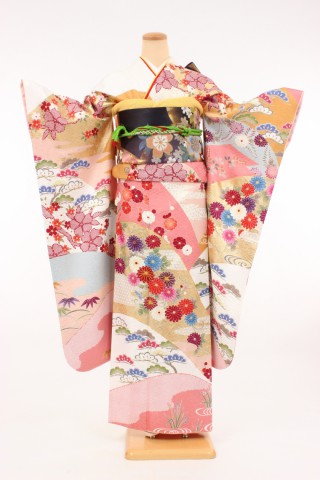 104-M-kaw0032 振袖レンタル Mサイズ ピンク/遠山に松菊 振袖~13号 お客様..