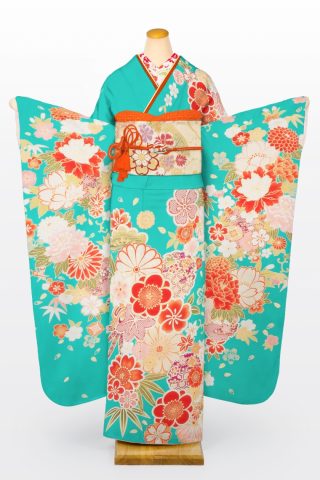 104-L-kaw0334 振袖レンタル Lサイズ 水色/桜菊竹文 振袖 ~13号 お客様:..