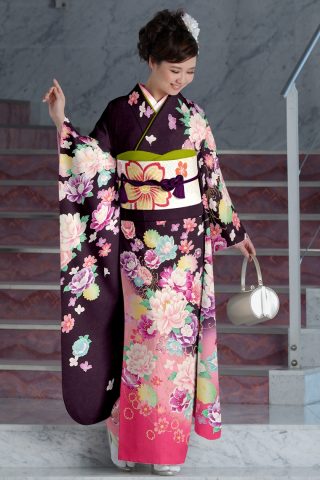 104-S-kaw0064 振袖レンタル Sサイズ 紫/牡丹に小花 振袖 ~13号 お客様:..