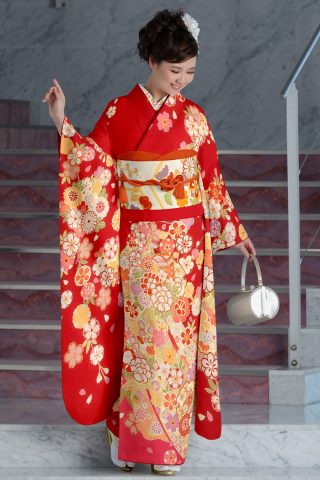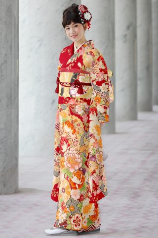 104-S-kaw0095 振袖レンタル Sサイズ 赤/吉祥熨斗目華紋 振袖 ~13号 お客..