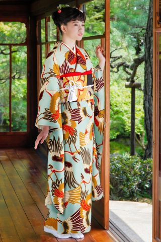 104-L-kaw0028 振袖レンタル Lサイズ 水色/鶴の舞 振袖 ~13号 お客様:I..