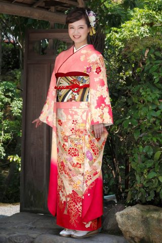 104-M-kaw0156 振袖レンタル 振袖Mサイズ 貝桶に束ね熨斗枝垂れ桜 ピンク 振袖 ~..