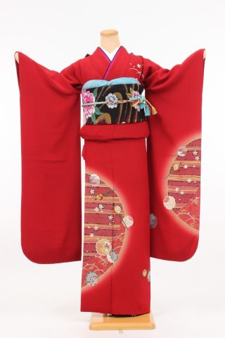 104-LL-kaw0082 振袖レンタル LLサイズ 赤/雪輪に波頭図 振袖 ~13号 お..