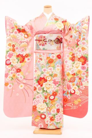 104-L-kaw0072#1 振袖レンタル Lサイズ ピンク/松竹桜 振袖 ~13号 お客..