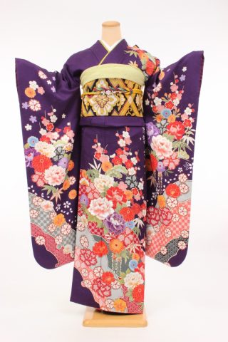 104-M-kaw0036#1 振袖レンタル Mサイズ 紫/雪輪に富貴花 振袖 ~13号 ..