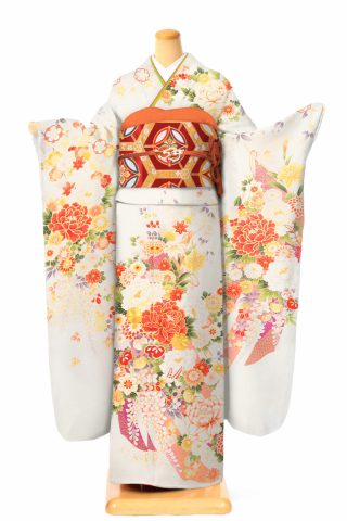 104-M-kaw0162 振袖レンタル Mサイズ 白地/豪華草花図 振袖 ~13号 お客様..