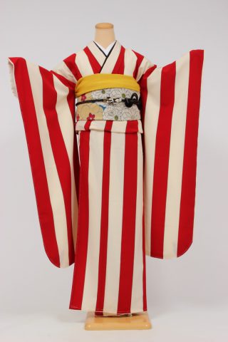 104-M-gaw0123 振袖レンタル Mサイズ 白赤/粋/きもの道楽 振袖 ~13号 お..