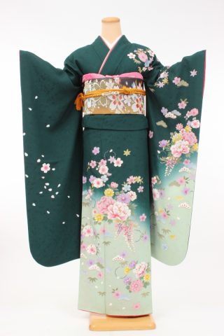 104-M-kaw0006 振袖レンタル Mサイズ グリーンボカシ/花の宴 振袖 ~13号 ..