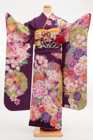 104-S-kaw0071 振袖レンタル Sサイズ 紫/大菊に牡丹と蝶/Risa Hiroko×..