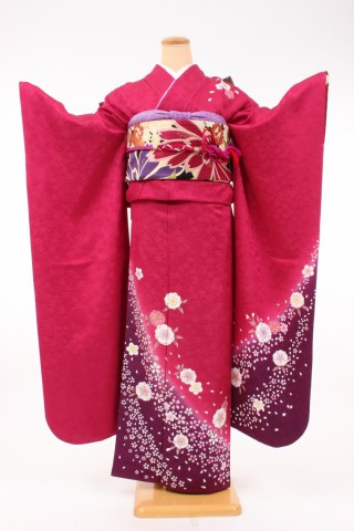 104-L-kaw0193 振袖レンタル Lサイズ 赤紫/桜吹雪 振袖 ~13号 お客様:O..