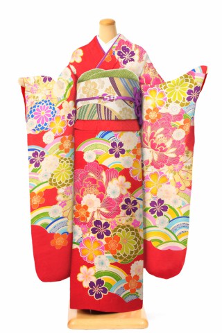 104-LL-kaw0092 振袖レンタル LLサイズ 赤/彩青海大牡丹 振袖 ~13号 お..