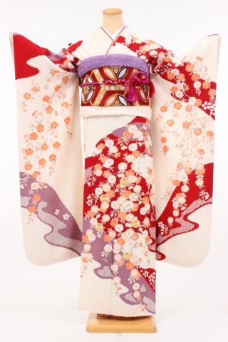 104-M-gaw0199 振袖レンタル Mサイズ クリーム/流水桜/H・L(アッシュエル)..