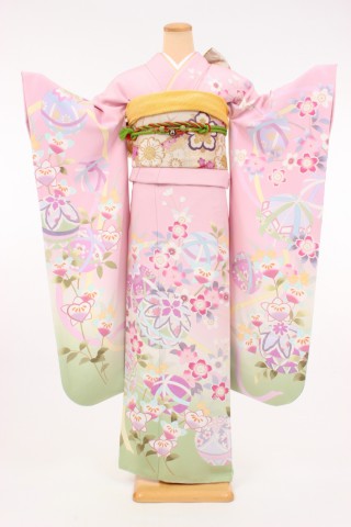 104-M-kaw0045 振袖レンタル Mサイズ 桃色/鞠遊び 振袖 ~13号 お客様:I..