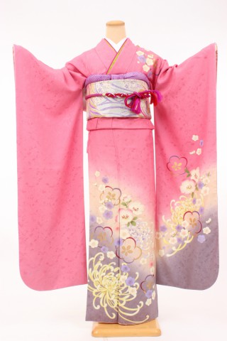 104-L-kaw0194 振袖レンタル Lサイズ ピンク/乱菊に桜 振袖 ~13号 お客様:I.Y..