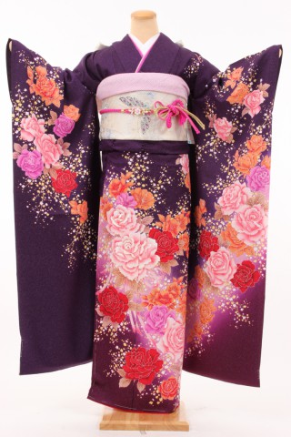 104-M-kaw0136 振袖レンタル Mサイズ 紫/薔薇園 振袖 ~13号 お客様:Y.W様 千..