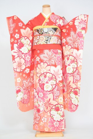 104-L-kaw0133 振袖レンタル Lサイズ 朱赤/桜楓 お客様:M.K様 東京都 20..