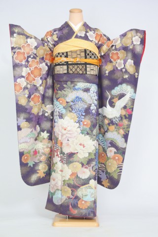 104-LL-kaw0015 振袖レンタル LLサイズ 紫/豪華牡丹鶴文様 金通 お客様:A.Y..