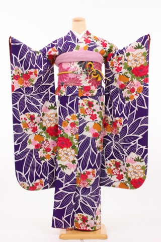 104-M-gaw0083 振袖レンタル Mサイズ 紫/ジパング/岡重 お客様:N.S様 神奈川県 ..