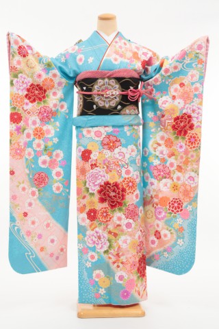 104-0119 振袖 新品レンタル 水色/流水に牡丹桜 お客様:K.M様 千葉県 30代 ■..