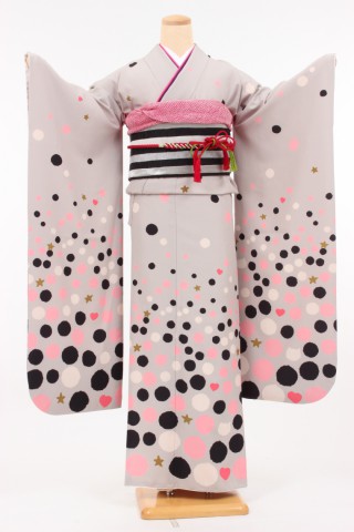 104-M-gaw0024 振袖レンタル Mサイズ グレー/ツモリシサト 水玉 お客様:A.T様..