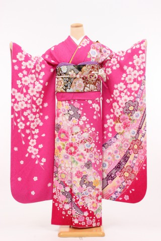 104-L-kaw0175 振袖レンタル Lサイズ ピンク/吉祥花結び お客様:M.H様 神奈川..