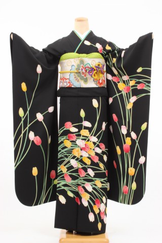 104-LL-kaw0045 振袖レンタル LLサイズ 黒/チューリップ お客様:R.O様 ..