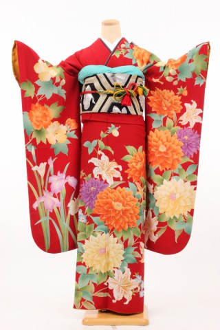 104-M-gaw0072 振袖レンタル Mサイズ 赤/アヤメと牡丹/きもの道楽 お客様:M.N..