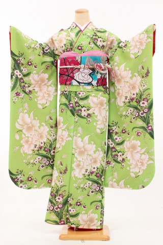 104-M-gaw0182 振袖レンタル Mサイズ グリーン/百合/きもの道楽 お客様:K.U..