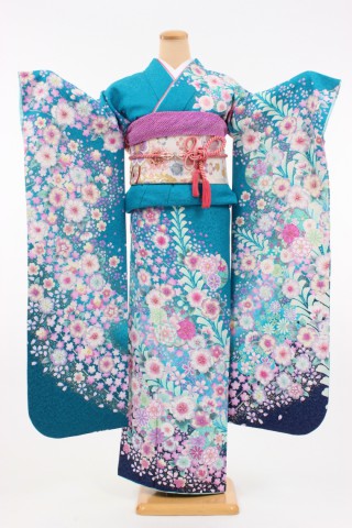 104-L-kaw0001 振袖レンタル Lサイズ ブルー/辻が花 お客様:T.K様 愛知県 20代..