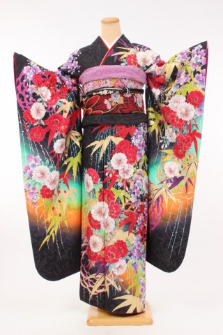 104-LLO-kaw0012 振袖レンタル LLOサイズ 黒/花の饗宴 お客様:H.S様 富山県 ..