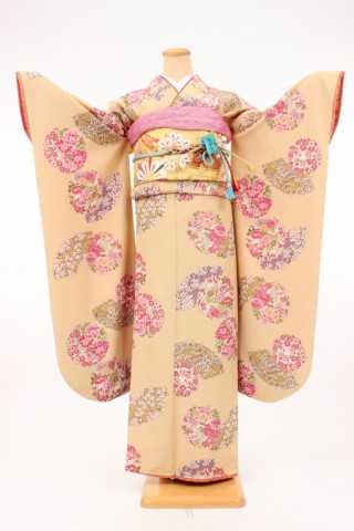 104-M-gaw0012 振袖レンタル Mサイズ クリーム/花の丸 お客様:K.S様 愛知県..