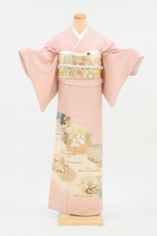 102-L-kaw0004 色留袖レンタル Lサイズ ピンク/琳派百景 お客様:C.T様 茨木..