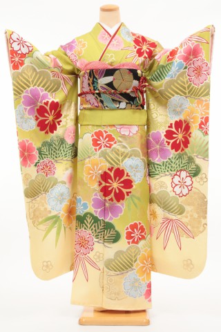 104-0142 振袖 新品レンタル 黄緑/松竹桜 お客様:M.E様 富山県 20代 ■和..