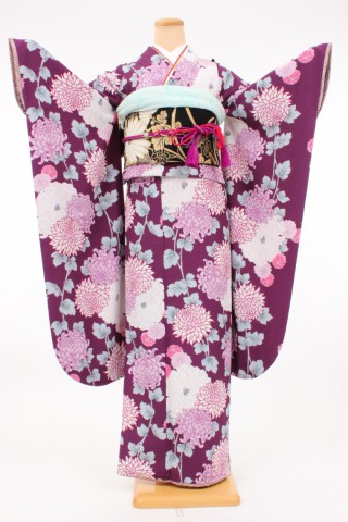 104-M-gaw0010 振袖レンタル Mサイズ 濃い紫/菊尽くし お客様:M.F様 東京都..