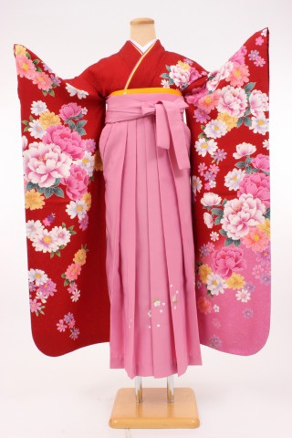104-L-kaw0046 振袖レンタル Lサイズ 赤/菊と牡丹 お客様:Y.N様 石川県 10..