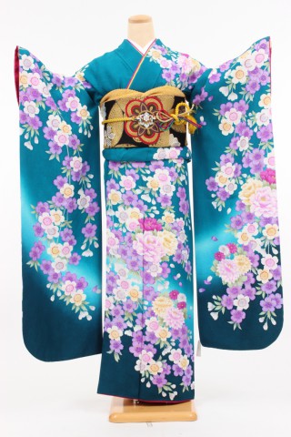104-L-kaw0110 振袖レンタル Lサイズ 深緑/枝垂れ桜 お客様:K.N様 奈良県 ..
