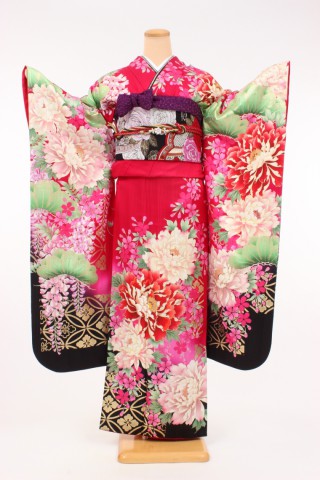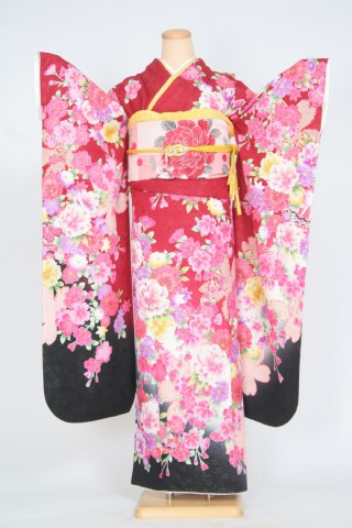 104-L-kaw0131 振袖レンタル Lサイズ 赤/鹿の子桜に花尽し お客様:M.T様 大..