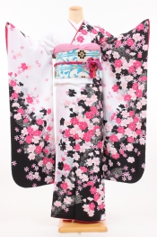 104-L-kaw0174 振袖レンタル Lサイズ 黒ぼかし/花蝶 お客様:O.N様 三重県 2..
