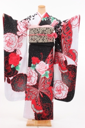 104-M-gaw0188 振袖レンタル Mサイズ 黒白/蝶の誘い/Rumi K(キクチルミ) ..