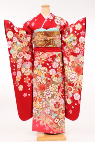 104-L-kaw0095 振袖レンタル Lサイズ 赤/大桜に鞠 お客様:T.H様 富山県 ..