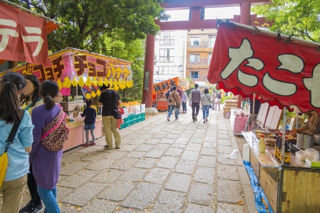 「根津神社」は創建1900年にもなる由緒ある神社で、四季折々に美しい花の名所ともなっています。とくに春の「文京つつじまつり」は有名で、境内西側の斜面は濃いピンクに染まり、神輿渡御(みこしとぎょ)や根津権現太鼓をはじめとする各種の演芸が行われます。期間中は甘酒茶屋や植木市、骨董市など露店が並び、多くの人で賑わいます。