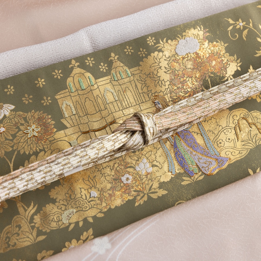 加賀本金箔の刺繍袋帯 ペルシャ文様が美しくあしらわれた響庵ブランドの逸品